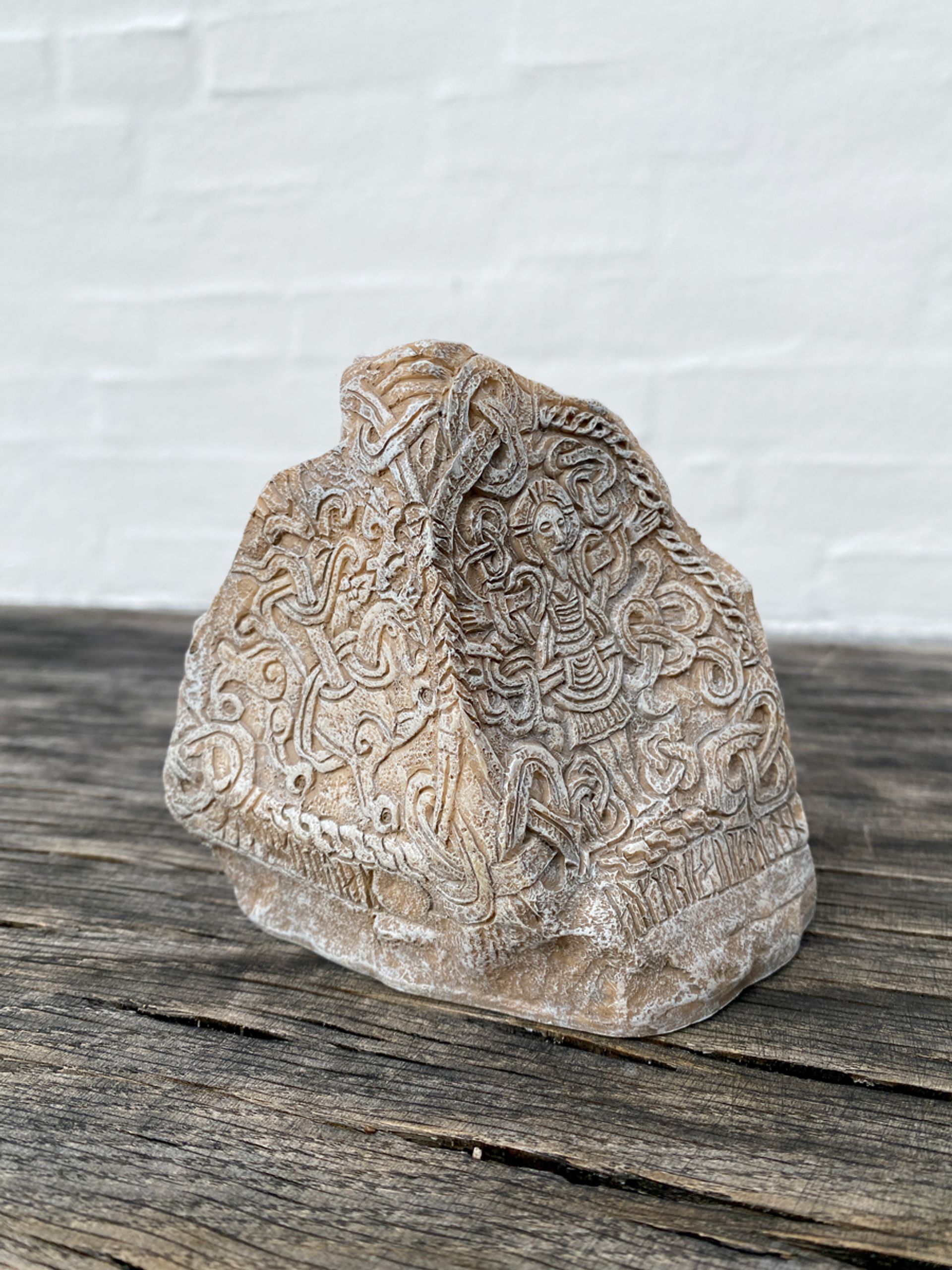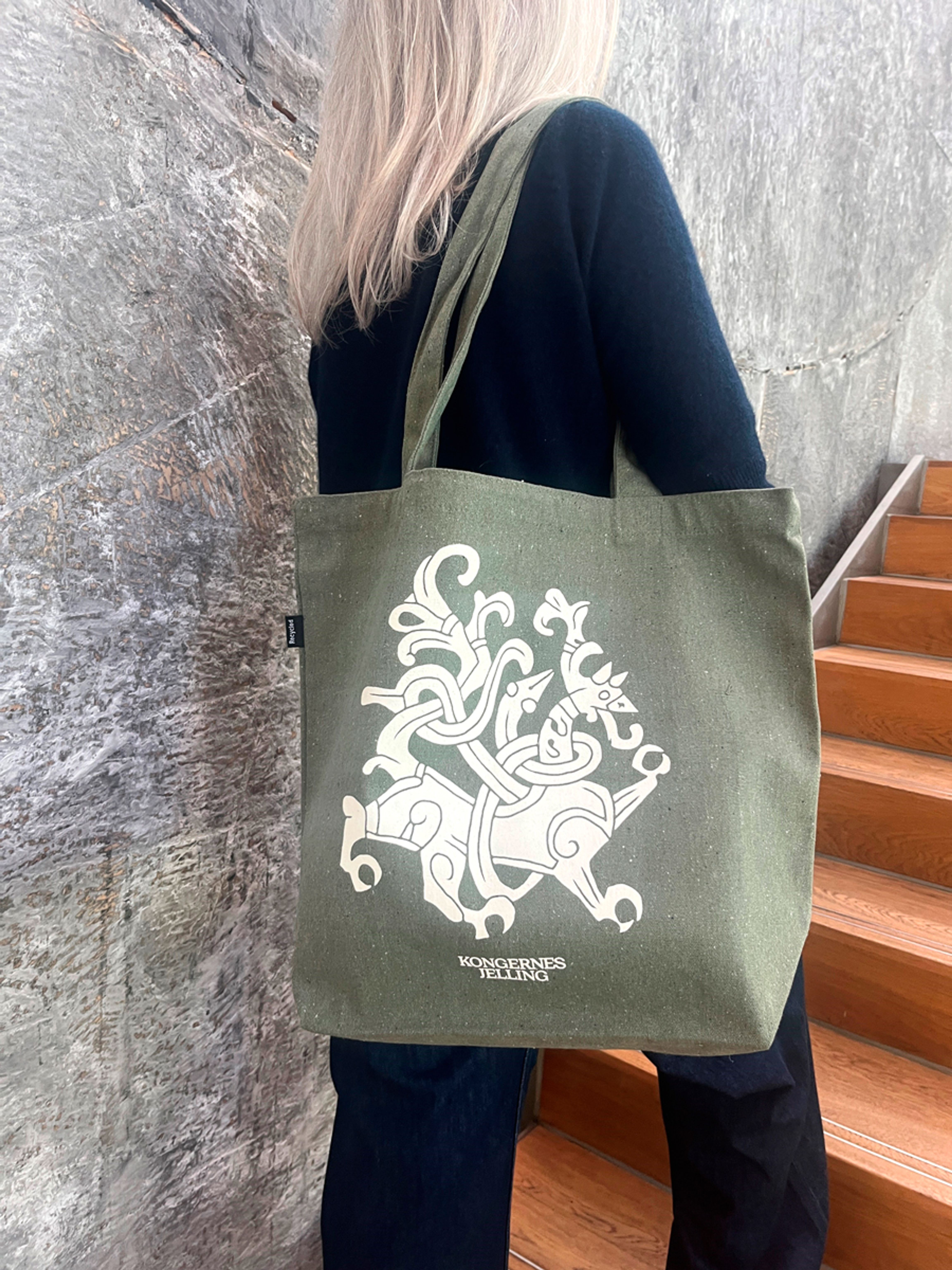 Vikingerne forstod at forene det praktiske med det smukke. Den tanke lever videre i butikkens udvalg. Her finder du keramik og glas formet efter tusindårige teknikker og æstetik. Vores viskestykker med Jellingdyret bringer et stykke af fortiden hjem i dit køkken, mens strikkeopskrifter inspireret af Vindelevskatten lader dig skabe historie med hænderne.