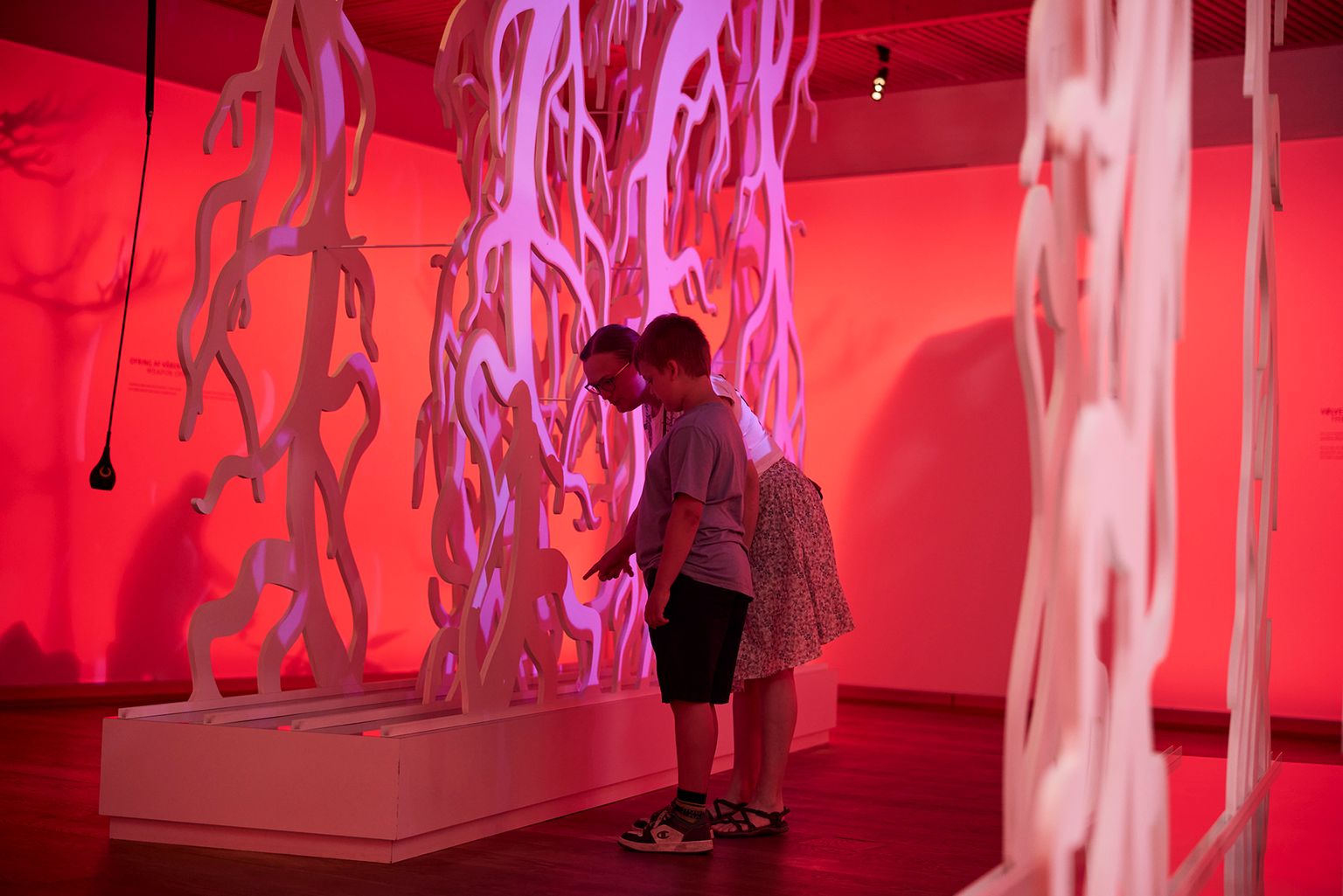 Oplev historierne om de nordiske guder ved verdenstræet Yggdrasil i Mytologirummet. I vil lære noget om dyrkelsen af guderne i vikingetiden og få indblik i deres verdensbillede. Uanset om I allerede arbejder med vikingetiden, kan I glæde jer til fantastiske historier. Se de vilde skyggebilleder og Odin, der både ofrede sig selv og sit øje for mere viden. Og kan I finde den mystiske vølve, som samler urter og fortæller om verdens undergang?