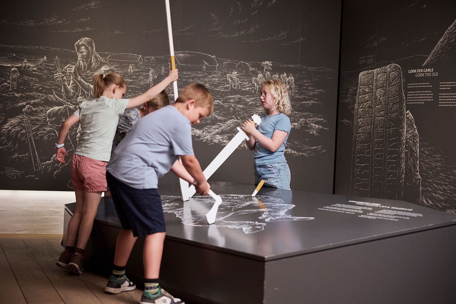 Du skal udforske vores oplevelsescenter, hvor du også vil høre historien om Harald Blåtand i Jelling. For eksempel skal du høre om hans vision og gerninger, og hvordan det var at leve på hans tid.